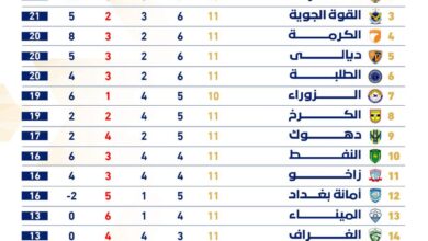 الثلاثاء انطلاق الجولة الـ12.. أربيل يواصل الصدارة والشرطة يحل وصيفاً