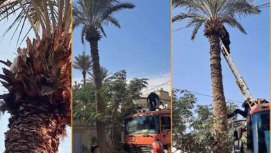 المراقب العراقي/ بغداد.. شغلت قطة عالقة أعلى نخلة في مدينة الصدر شرقي بغداد، عناصر الدفاع المدني بعد ان تلقوا نداءً…