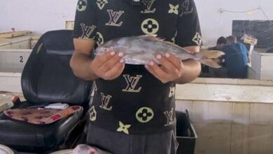 سمكة نادرة تلفت الأنظار في سوق الفاو