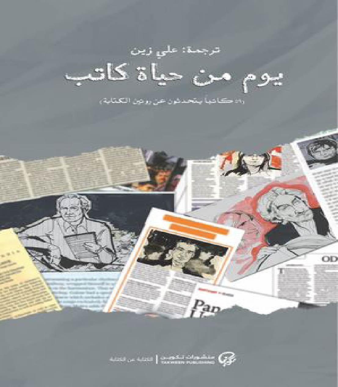 كتاب «يوم من حياة كاتب» يوضح عنوانه الفرعي أن «59 كاتبا يتحدثون عن روتين الكتابة» فيه، وشاركوا في الإجابة على سؤال كيف يكون «يوم الكتابة» في حياة كل واحد من هؤلاء الكتاب?، يقع الكتاب في (270) صفحة، وصادر عن دار تكوين، عام 2017، وترجمه علي زين. لم يكن من بين هؤلاء الكتاب أي كاتب مسرحي، مع أن هناك من عمل في إعداد السيناريوهات الدرامية، لم يبرز أحد من الكتاب أيضا ككاتب قصة قصيرة، وكان هناك بضعة من كتاب أدب الأطفال. أما الشعراء فكان هناك (8) شعراء، وثلاثة منهم روائيون أيضا، وغلب حديث اثنين منهم عن الرواية، وكان من بين هؤلاء الثمانية شاعر مذيع.