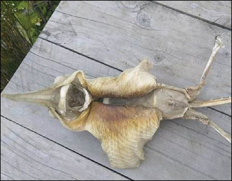 كانت هانّا ماري من سكان كرايستشيرش في نيوزيلندا، تقوم بواجبها المدني بتنظيف شاطئ محلي، بعد عاصفة شديدة، عندما عثرت على بقايا مخلوق غريب للغاية. وقامت ماري ووالدتها، بتنظيف شاطئ (Rakaia Huts) في بلدة كانتربيري، وعثرت حينها على هيكل عظمي غريب الشكل، جعلها تصرخ من شدة حالة الرعب التي انتابتها عندما اكتشفت أن الشكل الغريب ليس مجرد قطعة خشب أو كيس بلاستيكي، كما توقعت في البداية. وقالت ماري لصحيفة (نيوزيلند هيرالد): (أول ما فكرت به هو أنه شيء فضائي)، وأيا كان هذا المخلوق، فقد كان يمتلك مخالب في جناحيه، ولديه حاضنتان (تركيب تشريحي يوجد في ذكور بعض مجموعات من الحيوانات مثل الحشرات والأسماك، ويستخدم للتزاوج)، بالإضافة إلى ذيل طويل ورأس مستطيل وأنياب حادة، وهي أوصاف قد تشكل (كابوسا) وفقا لمعايير البعض. وكانت ماري مترددة في تحريك الهيكل العظمي في البداية، خوفا من أن يكون ساما، لكن الفضول دفعها إلى حمله معها وعرضه على جارتها التي كانت محتارة في أمره أيضا، وما قد يكون هذا الحيوان الغريب بالفعل. وقالت ماري: (لقد قمت بتحميل الصور على فيسبوك، وكان الجميع يخمّن، حيث ذهبت جميع التعليقات إلى أنه من الفصيلة الورنكية/الورانك). ووضع الدكتور مالكولم فرانسيس حدا لجميع هذه التخمينات، بعد أن أكد أن هذا المخلوق هو ذكر (Dipturus nasutus AKA)، وهو نوع عنيف من فصيلة الورنكية/الورانك.