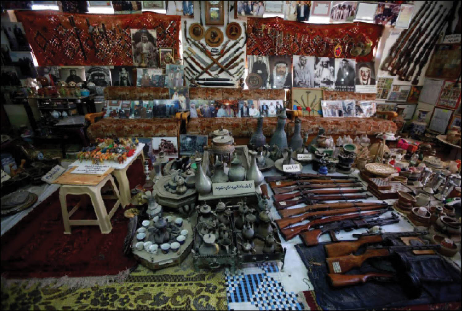 واعتاد جامع التحف، وهو أيضا زعيم عشائري، إخفاء الأسلحة التي جمعها إبّان حكم صدام حسين في مزارع بناحية القادسية في النجف. وبعد غزو العراق الذي قادته الولايات المتحدة في 2003 نجح عكار في استعادة مجموعته من الأسلحة والمسدسات إلى بيته وتحويل جزء منه إلى متحف.