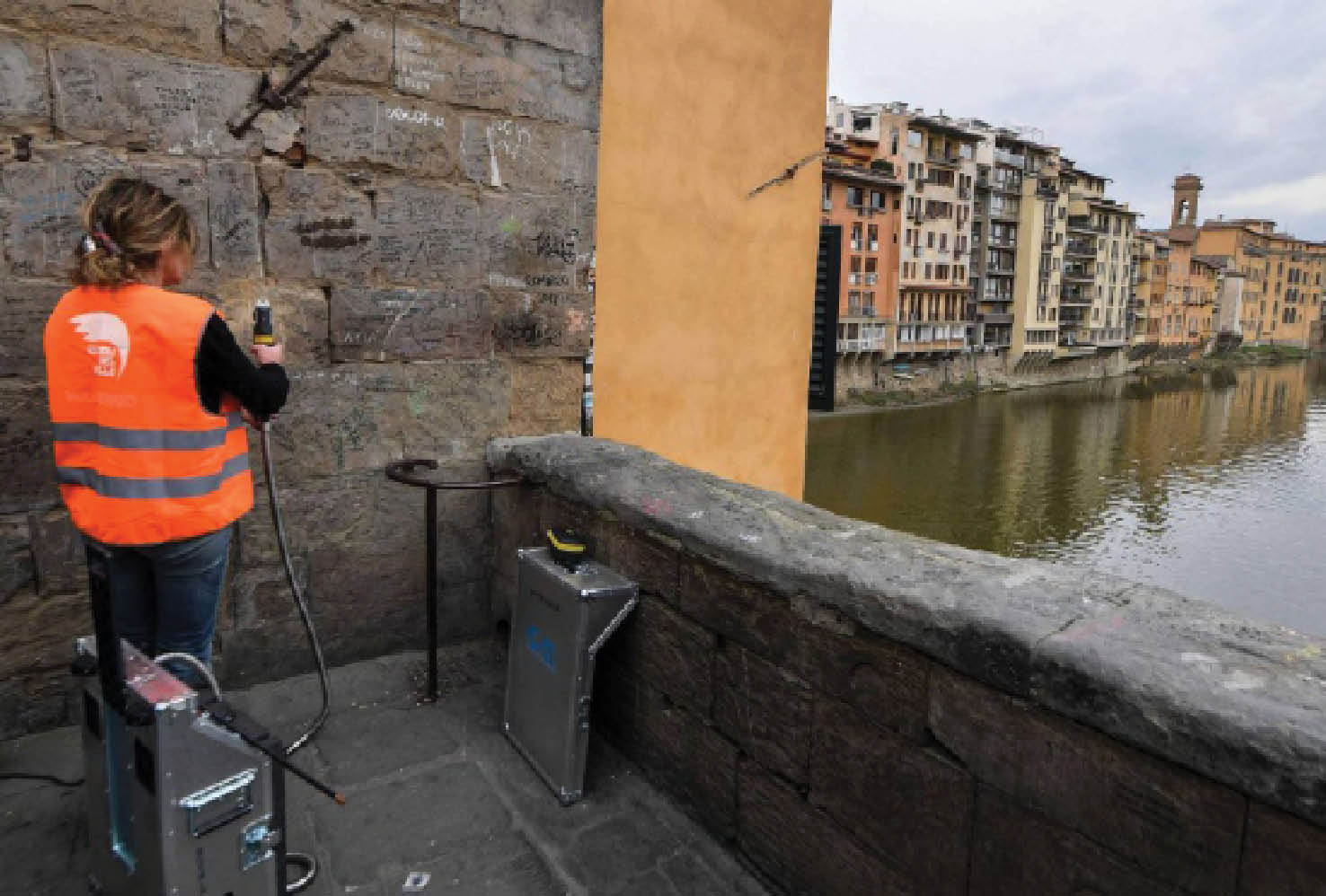 تزيل أشعة فضية اللون، في خلال بضع ثوان، رسوم غرافيتي سوداء خلّفها السياح على الجسر القديم في فلورنسا، في إطار مبادرة قائمة على أحدث تقنيات الليزر هدفها إعادة الرونق للمدينة الإيطالية تعرف بـ”ملائكة الجمال”.وعلى الرغم من أن قطع الذهب المعروضة في محال المجوهرات المنتشرة على هذا الجسر القديم (بونته فيكيو) تلمع في الواجهات، إلا أن أكثر ما يلفت نظر السياح والعشاق في الموقع هو رسوم الغرافيتي المنتشرة فيه.