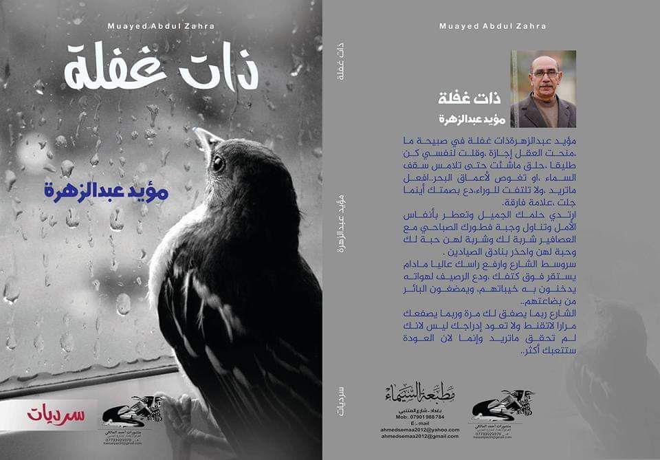 صدرت الطبعة الأولى من المجموعة القصصية «ذات غفلة» للكاتب والشاعر مؤيد عبد الزهرة عن دار نشر احمد المالكي، بقطع متوسط، وعدد صفحات بلغ نحو 188 صفحة.