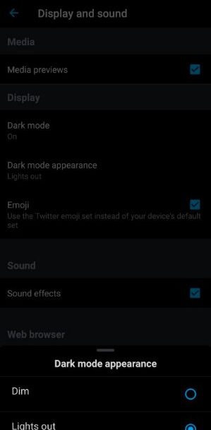 وبحسب التقرير فإن وضع “Dim” هو الوضع المظلم الموجود في تويتر، والذي يغير شكل الخلفية إلى ظلال زرقاء داكنة، أما وضع lights out فهو يقوم بتحويل الواجهة إلى واجهة سوداء حقيقية ما يساعد على الحد بشكل أفضل من استهلاك البطارية على الهواتف المزودة بشاشة OLED.