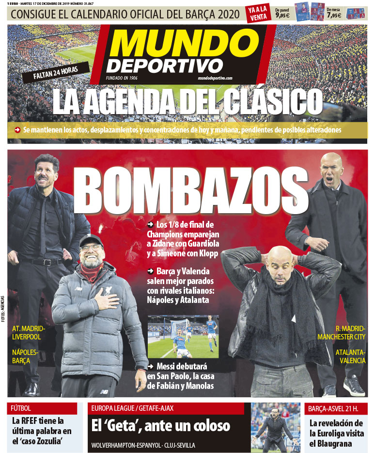 وخرجت صحيفة “موندو ديبورتيفو” بعنوان: “قنابل”.