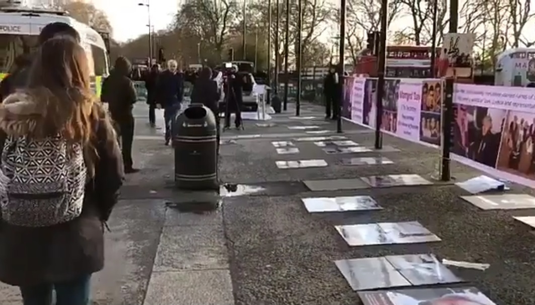 وأقامت المعارضة معرضًا للصور ووقفة تضامنيّة في ساحة ماربل آرج عصر يوم الأحد 15 كانون الأول، وندوة ومؤتمرًا صحفيًّا في «مقرّ اتحاد المعلّمين البريطانيّين» يوم الإثنين 16 كانون الأول، بحضور عدد من الشخصيّات البرلمانيّة والسياسيّة والحقوقيّة.
