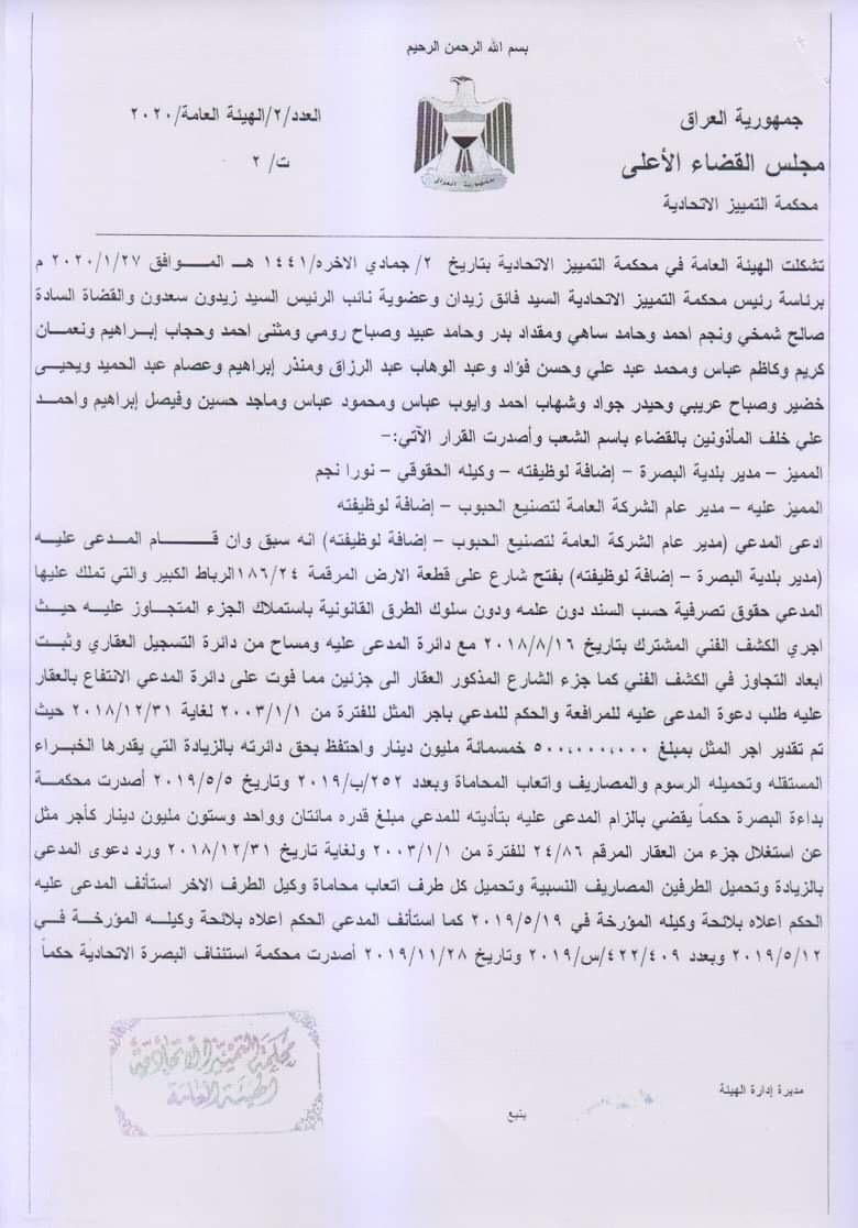 وقال القضاء الاعلى في بيان تلقت “المراقب العراقي” نسخة منه ان “الهيئة العامة لمحكمة التمييز الاتحادية أصدرت في جلستها المنعقدة بتاريخ 27 /1 / 2020 قرارا بالاتفاق بان ما يصدر من المحكمة الاتحادية العليا وهي غير مكتملة النصاب القانوني بموجب احكام المادتين 3 و5 من قانون المحكمة رقم 30 لسنة 2005 لا يعتد به وغير ملزم”.