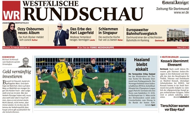 كما تغزلت صحيفة “Westfalische Rundschau” في قدرات هالاند التهديفية، ووضعته في واجهة غلافها، احتفاءً بما قدمه في مباراة الأمس.