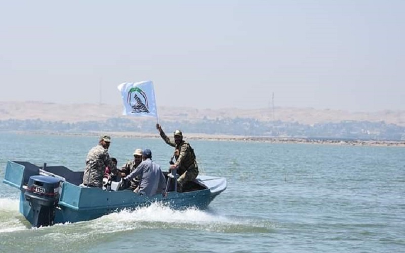 طهرت القوة النهرية التابعة للواء ٢٣ بالحشد الشعبي، الخميس، جزر واطراف بحيرة حمرين شرق بعقوبة.