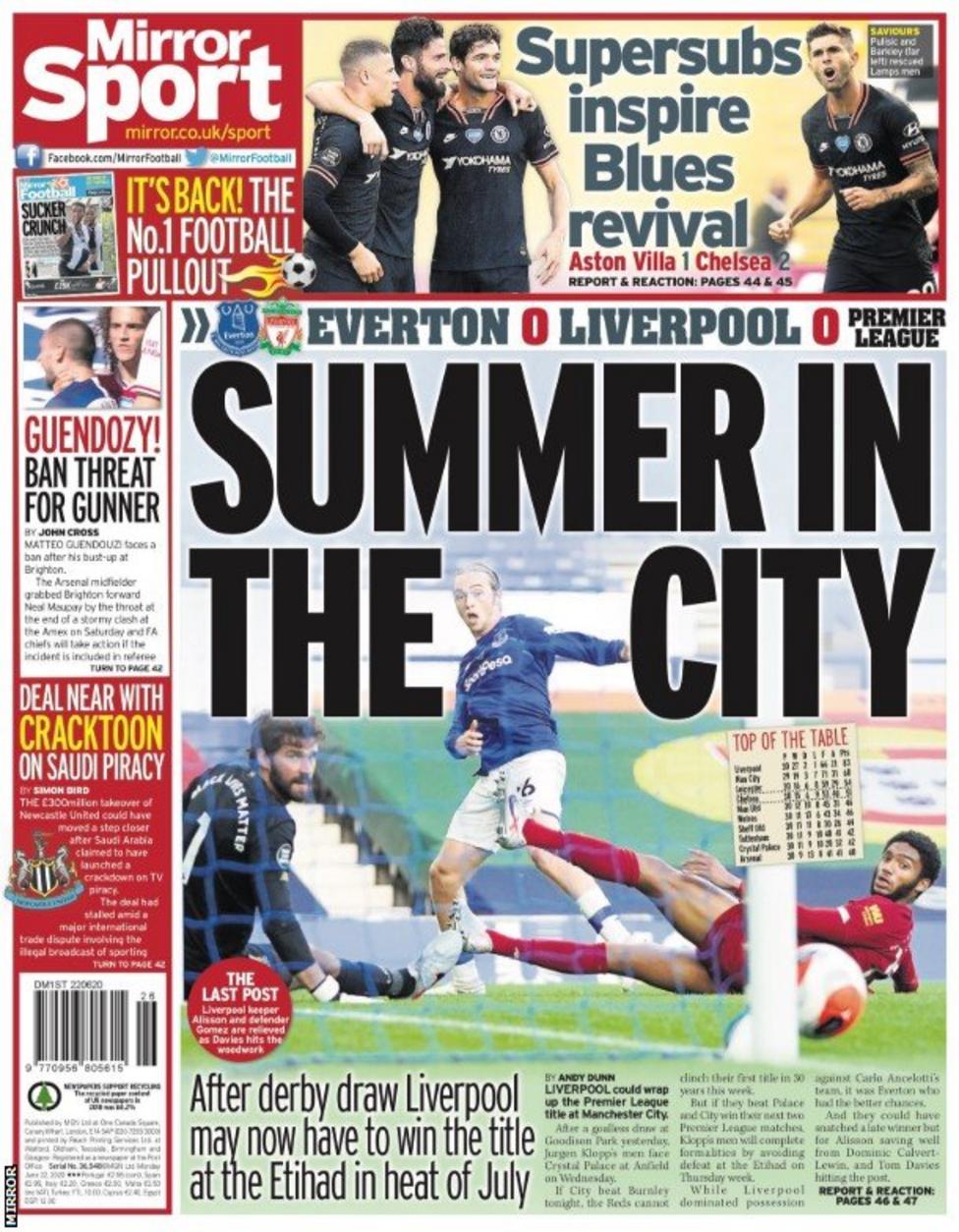 وعنونت صحيفة ميرور “بعد التعادل في الديربي.. ليفربول يجب الآن عليه الفوز باللقب في ملعب الاتحاد في حرارة تموز”.