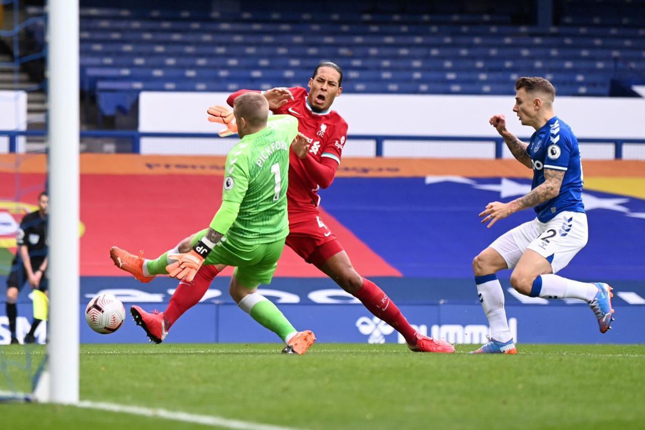 وتعرض فان دايك لإصابة قوية خلال مواجهة ليفربول وإيفرتون في ديربي الميرسيسايد، بعد تدخل قوي من جوردان بيكفورد، حارس التوفيز، ولم يتمكن من إكمال المباراة.