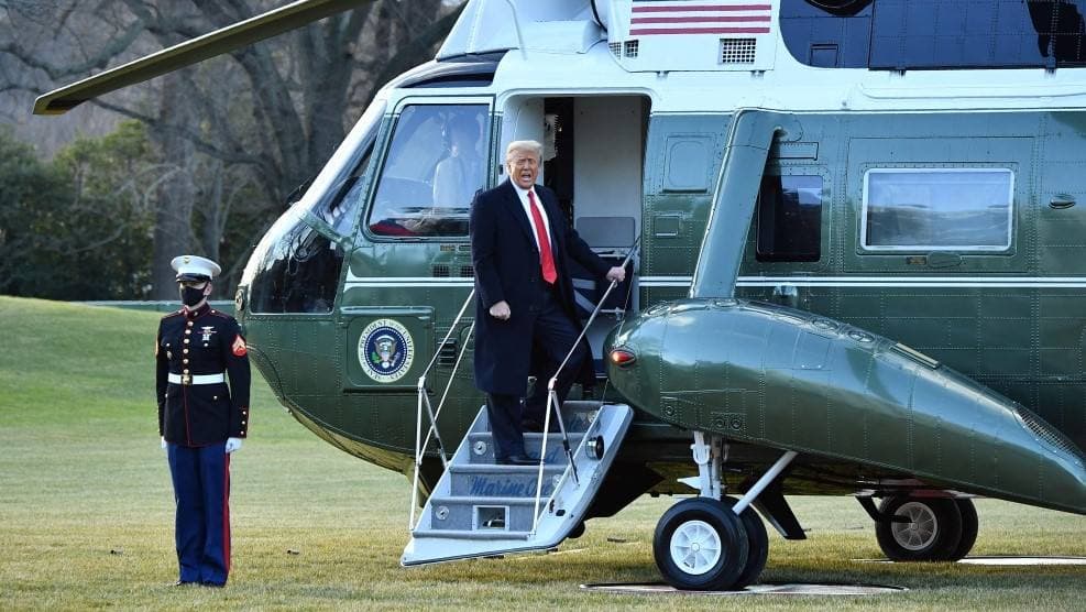 غادر دونالد ترامب على متن مروحية رئاسية، العاصمة الأميركية واشنطن بآخر رحلة له بصفته الرئيس الـ45 للولايات المتحدة، متوجها إلى قاعدة أندروز الجوية الواقعة في ولاية ماريلاند على بعد 24 كلم عن وسط واشنطن، حيث تنتظره الطائرة رقم 1 التابعة لسلاح الجو الأمريكي.