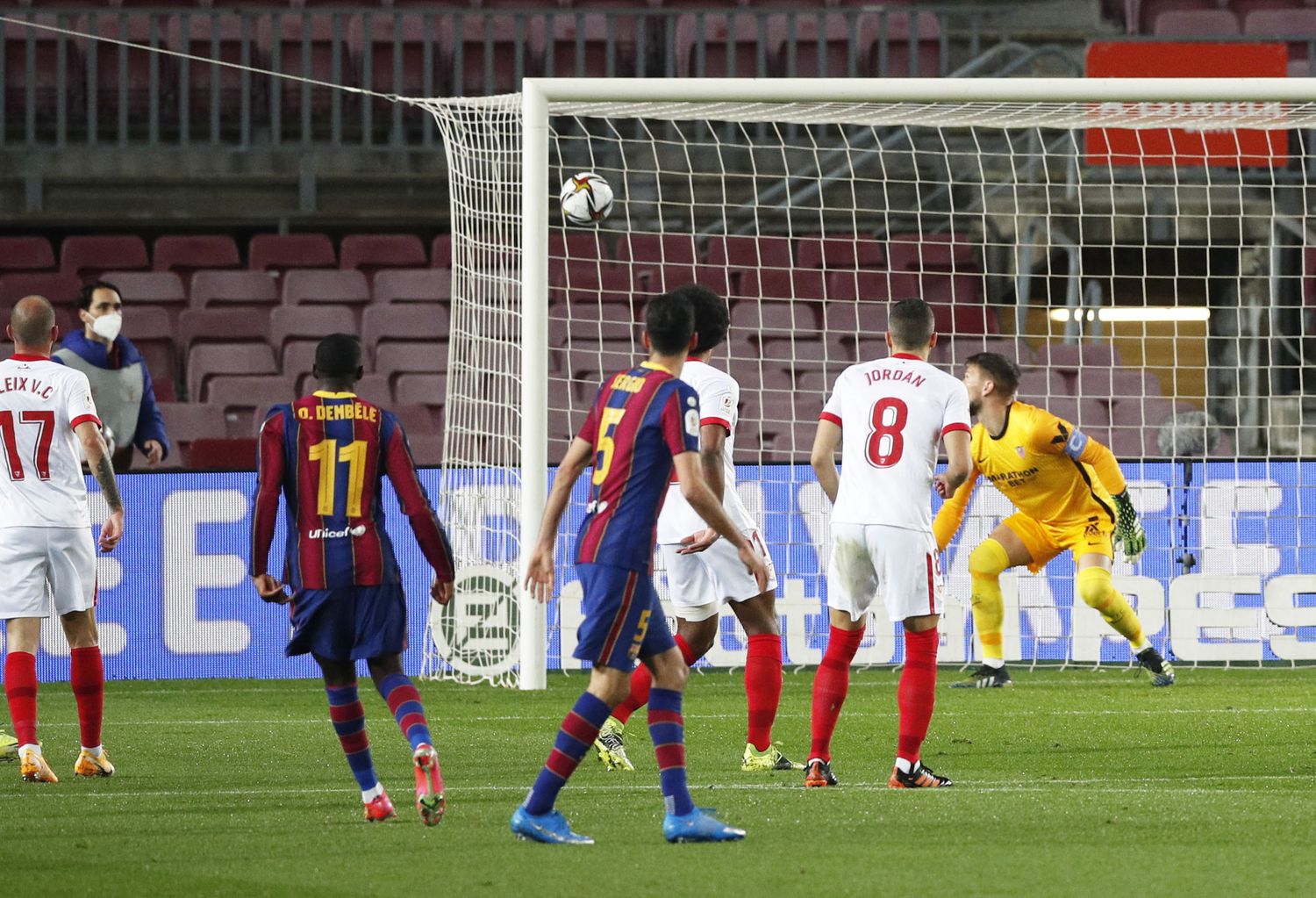 وبعد انتهاء المباراة حيث حقق البارسا انتفاضة وعوض خسارته في مباراة الذهاب بهدفين نظيفين، تحدث لوبيتيجي عن ركلة الجزاء التي احتسبت للأندلسيين بعد تدخل لاعب برشلونة أوسكار مينجيزا على لوكاس أوكامبوس الذي انبرى لتنفيذها لكن حارس البلاوجرانا تير شتيجن تصدى لها.