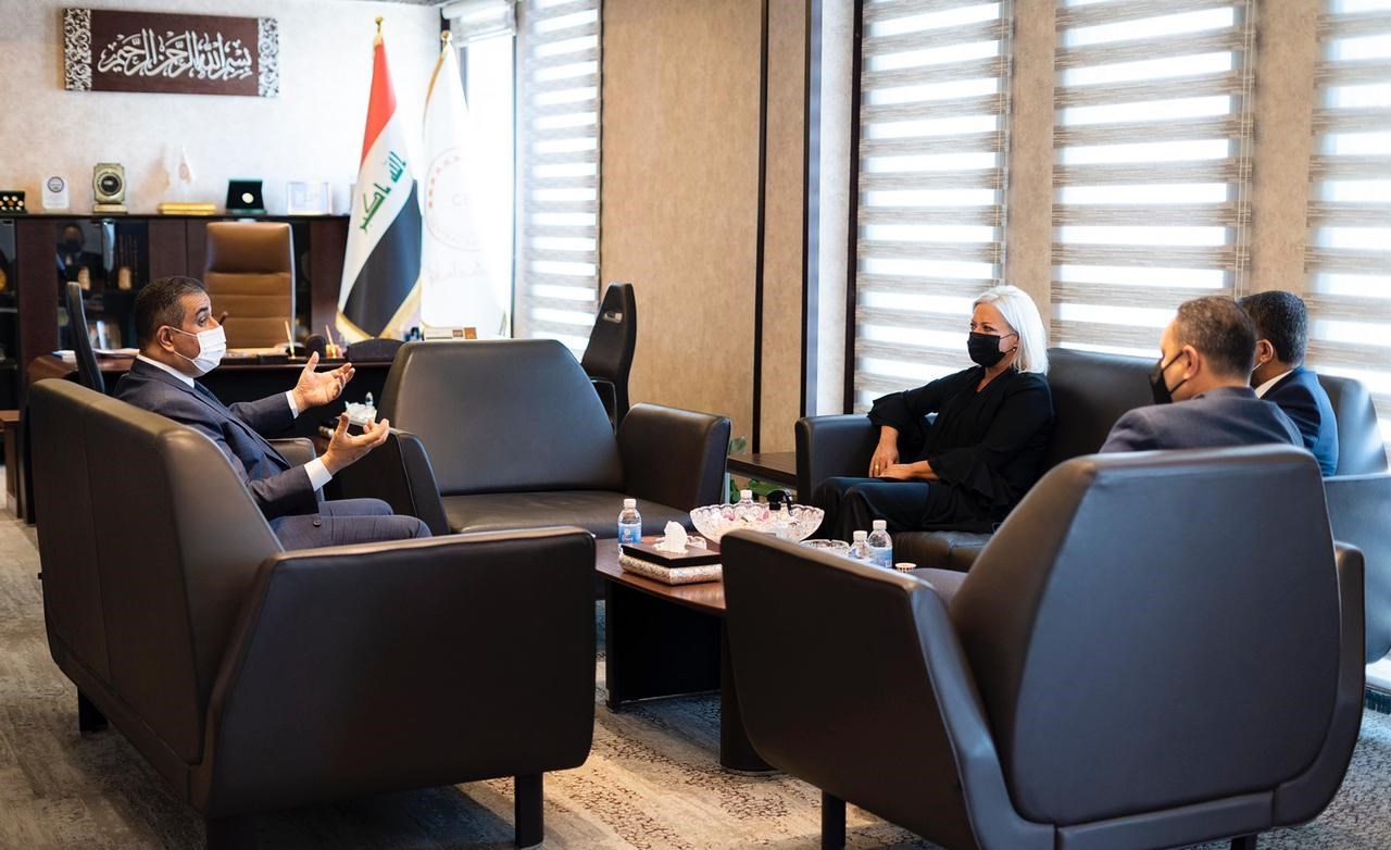 بحث محافظ البنك المركزي العراقي مصطفى غالب مع الممثلة الخاصة للأمين العام للأمم المتحدة في العراق جينين هينيس بلاسخارت، الاوضاع المالية في العراق.