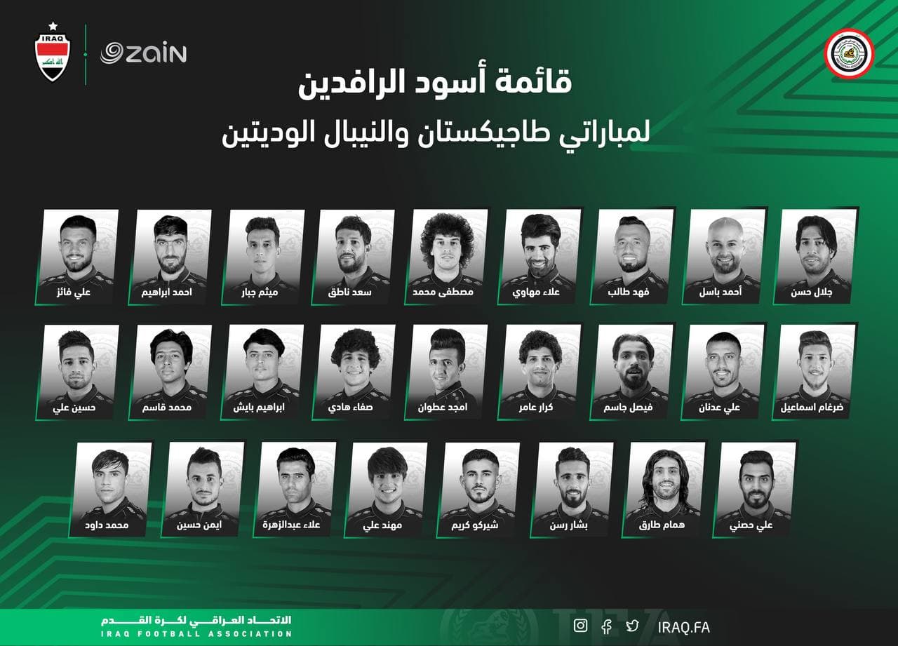 الى ذلك أعلن السلوفيني ستريشكو كاتانيتش، مدرب المنتخب العراقي قائمة لاعبيه، استعدادًا للدخول في المعسكر التدريبي في البصرة وخوض ودية طاجيكستان في الرابع والعشرين من الشهر الحالي.
