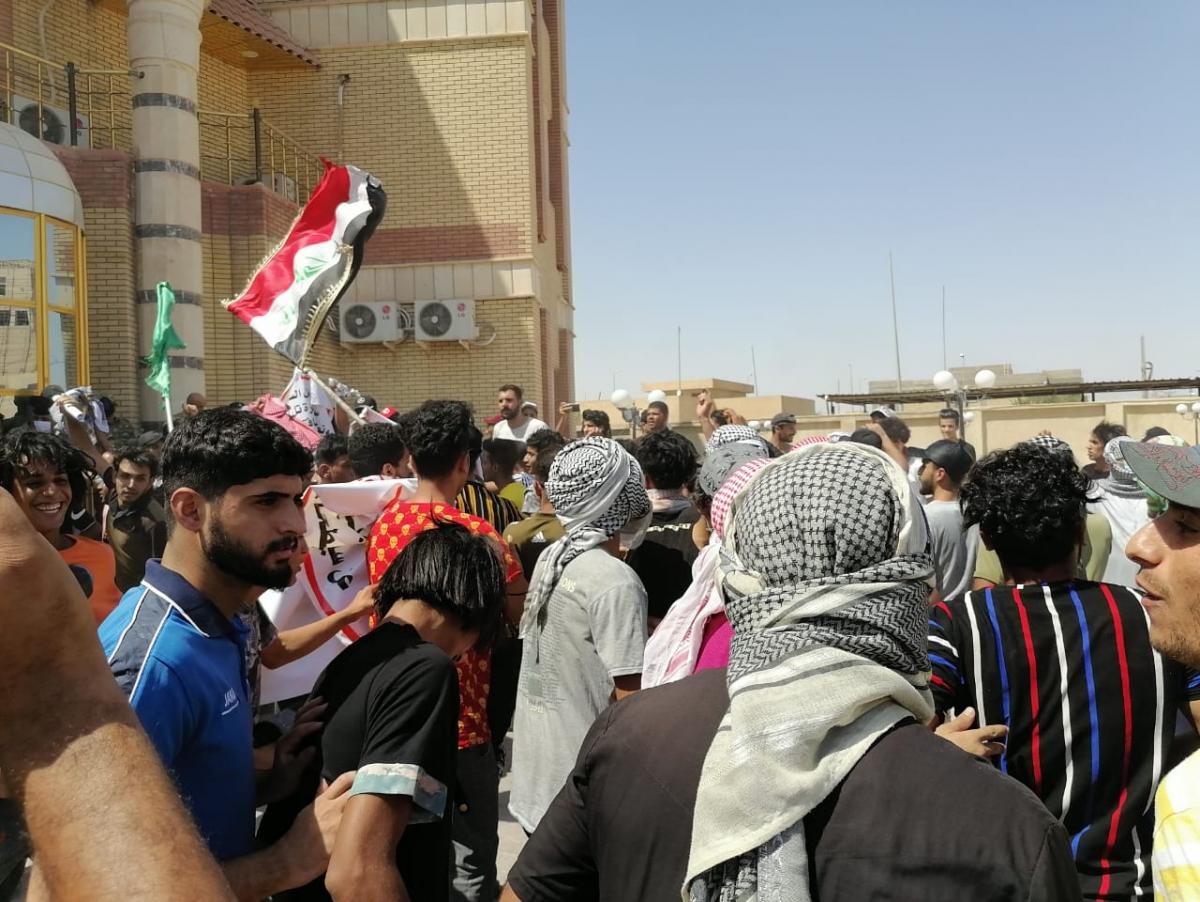 وقال مصدر في ديوان المحافظة إن المحتجين رددوا شعارات وأهازيج تطالب إدارة المحافظة بحسم ملف استئناف العمل وصرف المستحقات للشركة المنفذة مشيرا إلى المحتجين متواجدين الآن في مبنى المحافظة فيما يجري عدد منهم مفاوضات مع المحافظ بحضور أحد أعضاء المجلس الاستشاري من أهالي القضاء.