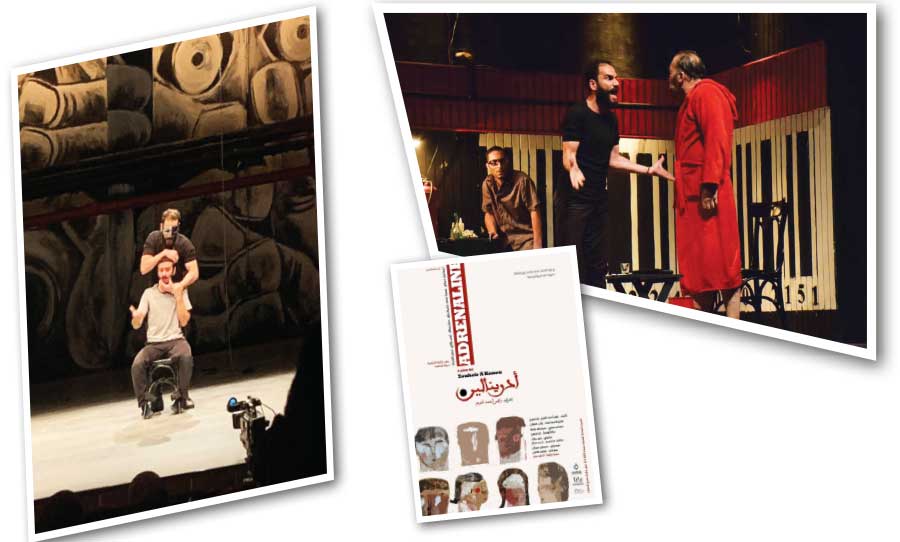 أسئلة كثيرة خرج بها رواد مسرح الحمراء في العاصمة السورية دمشق، خلال الأسبوعين الفائتين بعد حضور عرض «أدرينالين» وبقيت عالقة في أذهانهم، بدون أن يتمكنوا بالضرورة من الحصول على إجابات شافية لها. العرض الذي يمتد على مدار ساعة من الزمن، مع ستة ممثلين وسابعة تظهر فقط على شاشة جانبية، وبديكور صاخب يغلب عليه اللونان الأسود والأحمر، ويعتبر إلى حد كبير خارجا عن مألوف المسارح السورية، ونتاجات المسرح القومي، أراد فريق «أدرينالين» من خلاله أن يتحدث عن عوالم من العنف، قد تكون خفية بشكل ظاهري، لكنها تغري كثيرين بخوضها والغرق فيها، وزيادة جرعتها كل مرة، حتى إن كان على حساب سلامة وحياة أشخاص آخرين.