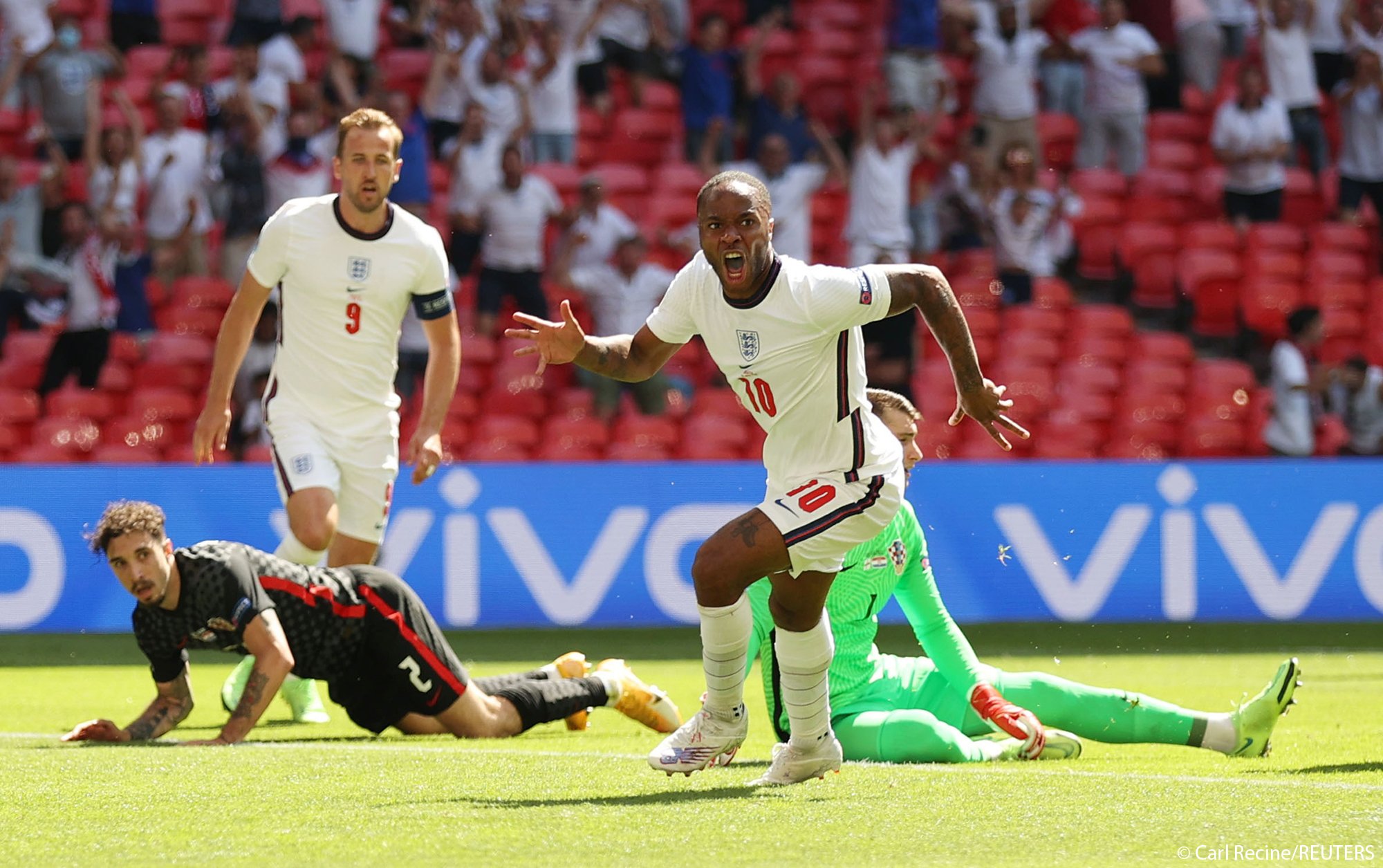وبعد نجاته من عاصفة هجومية مبكرة عندما رد القائم محاولة لإنجلترا من فيل فودين وتصدي دومينيك ليفاكوفيتش حارس الضيوف لتسديدة مباشرة من كالفين فيليبس، اهتزت شباك كرواتيا أخيرا في الدقيقة 57 عبر رحيم سترلينج.