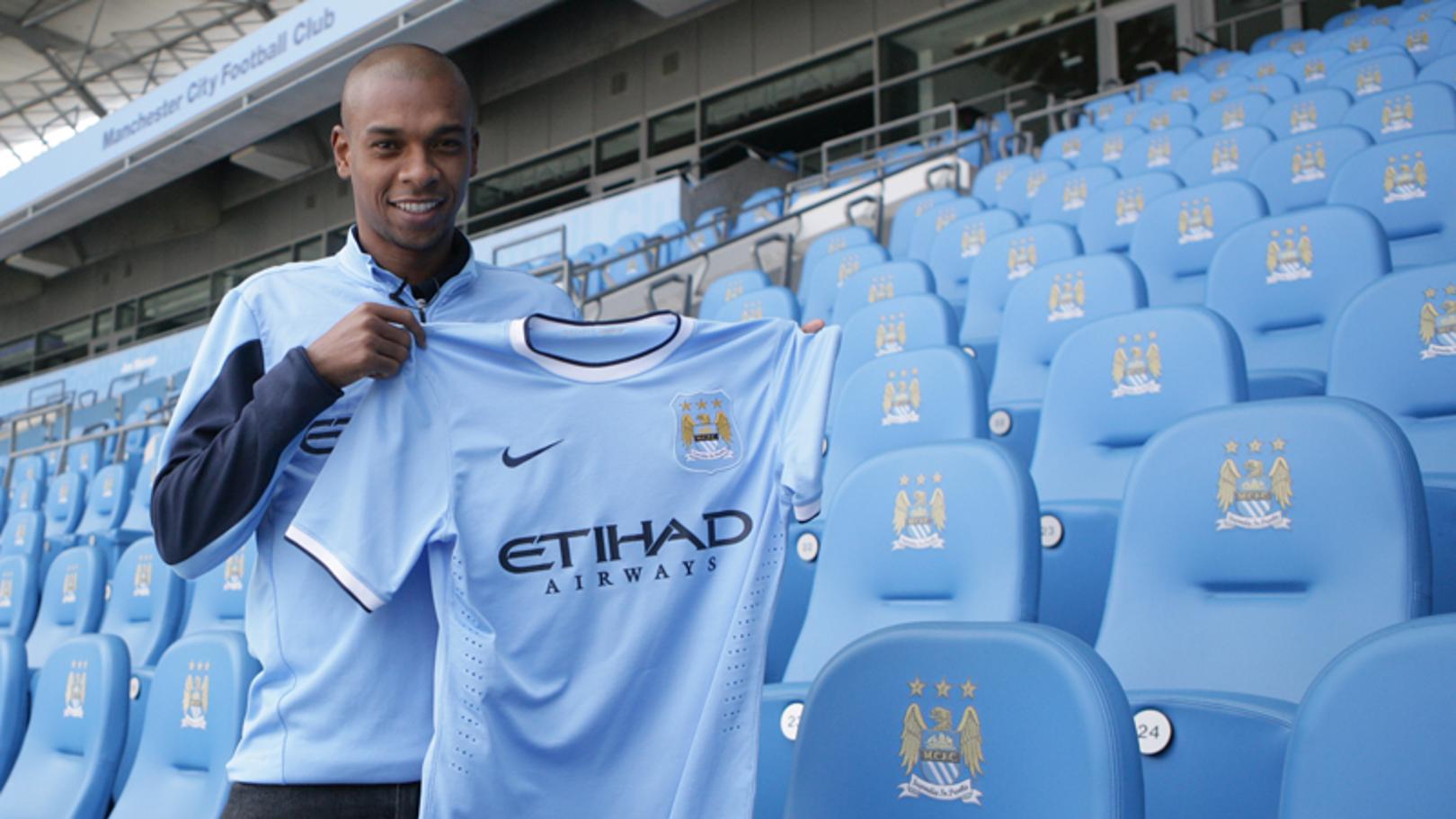 وشارك فرناندينيو في 350 مباراة بقميص مانشستر سيتي بجميع البطولات، وحصد 12 لقبًا.