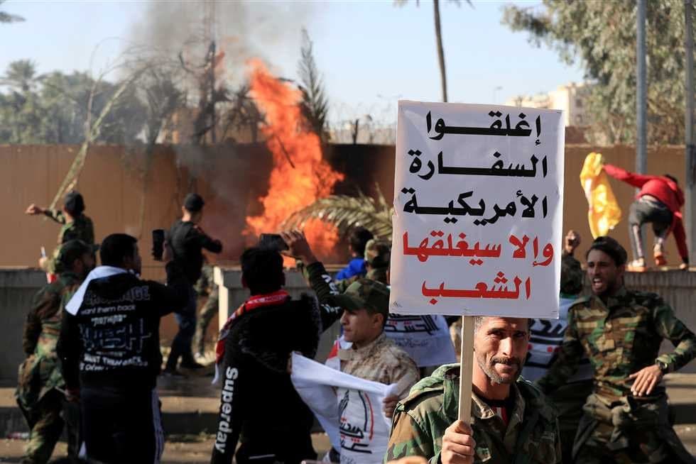 وسار المشيعون على وقع هتافات “الموت لأميركا” و”الثأر للشهداء” في ساحة الحرية بمنطقة الجادرية في بغداد القريبة من بوابة المنطقة الخضراء، حيث فرضت خلال التشييع إجراءات أمنية مشددة بينها إغلاق المنطقة المحصنة.