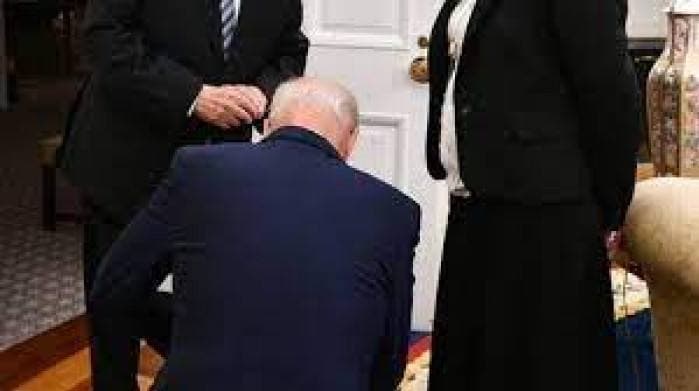 أحدثت صورة ظهر فيها الرئيس الأمريكي جو بايدن راكعا أمام ريفكا رافيتز مديرة مكتب الرئيس الإسرائيلي المنتهية ولايته رؤوفين ريفلين، ضجة على مواقع التواصل الاجتماعي.