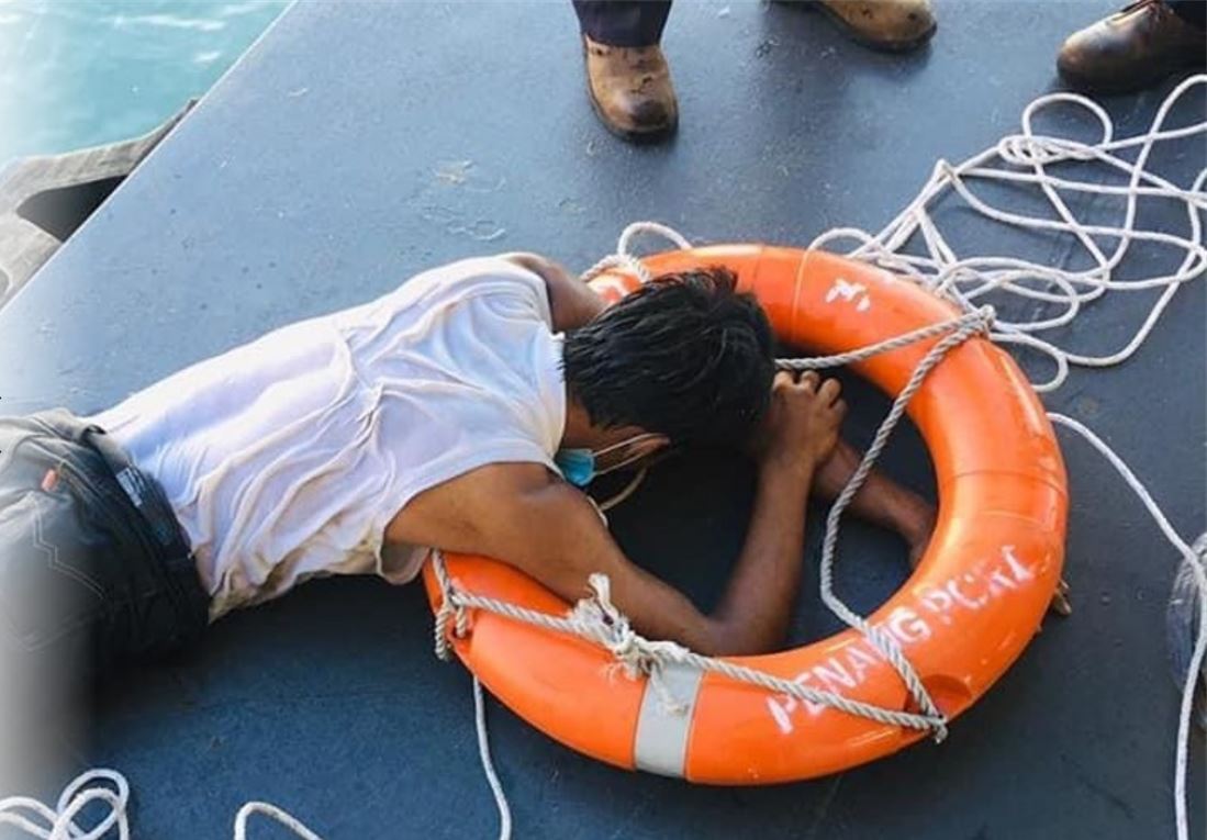 وتناقلت وسائل التواصل الاجتماعي في ماليزيا مقطع فيديو وصوراً لشاب تم إنقاذه من قِبل الشرطة البحرية بعد أن قفز إلى البحر.