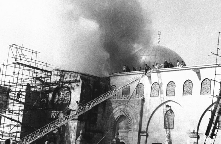 وفي يوم الـ 21 آب/ أغسطس 1969، اقتحم صهيوني أسترالي الجنسية يدعى “دينيس مايكل روهان” المسجد الأقصى، وأشعل النار عمدا في المصلى القبلي بالمسجد المبارك، فشبّ حريق في الجناح الشرقي للمصلى الواقع في الجهة الجنوبية من المسجد الأقصى، وأتت النيران على واجهات المسجد الأقصى وسقفه وسجاده وزخارفه النادرة وكل محتوياته من المصاحف والأثاث، وتضرر البناء بشكل كبير، مما تطلب سنوات لترميمه وإعادة زخارفه كما كانت.