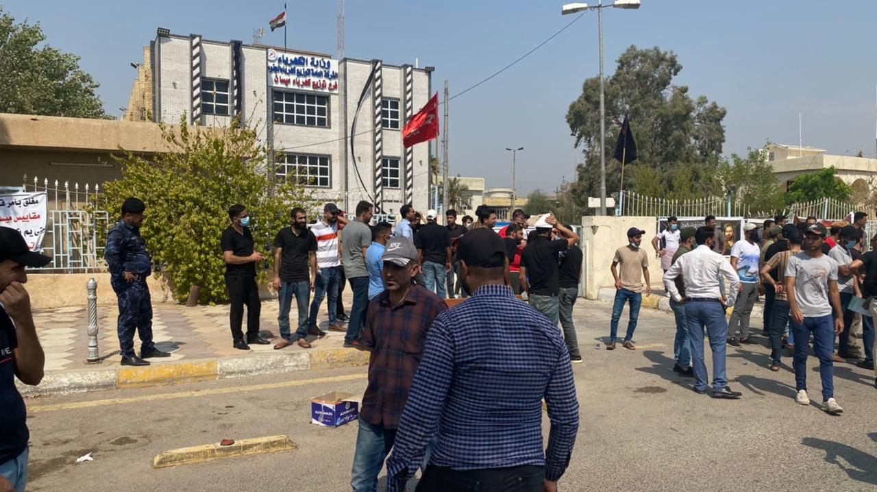 اعتصام عمال كهرباء ميسان للمطالبة بتحويلهم الى عقود وزارية