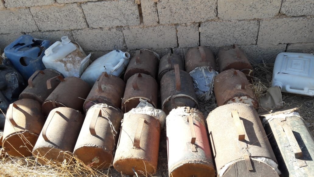 وقالت المديرية، في بيان تلقت “المراقب العراقي” نسخة منه، إنه “تاكيدا لمهامها في الوصول الى كافة مخابيء اعتدة واسلحة ومتفجرات داعش الارهابي، وبمعلومات دقيقة لشعبة الاستخبارات العسكرية في الفرقة العاشرة وبالتعاون استخبارات لواء المشاة ٣٨ والفوج الثاني تم ضبط ٥٥ عبوة ناسفة على شكل جلكانات سعة 20 لتر معبأة بمادة السي فور”.