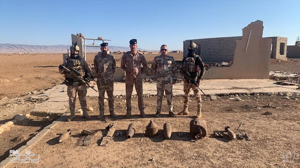 وأضاف، “وعلى إثر تلك المعلومات تم التنسيق مع استخبارات الفوجين الثاني والثالث لواء المشاة ٧٣ وقوات من الافواج ذاتها للوصول إلى مكان الكدس وضبط ٧٠ قنبرة هاون مختلفة العيارات، و٦ عبوات ناسفة محلية الصنع، و٥ مساطر تفجير، وصاروخ طائرة مسيرة وآخر من نوع غراد، و3 رمانات مختلفة، وبالإضافة الى قذيفة مدفع عيار ١٣٠ ملم وهي من مخلفات داعش الإرهابي”.