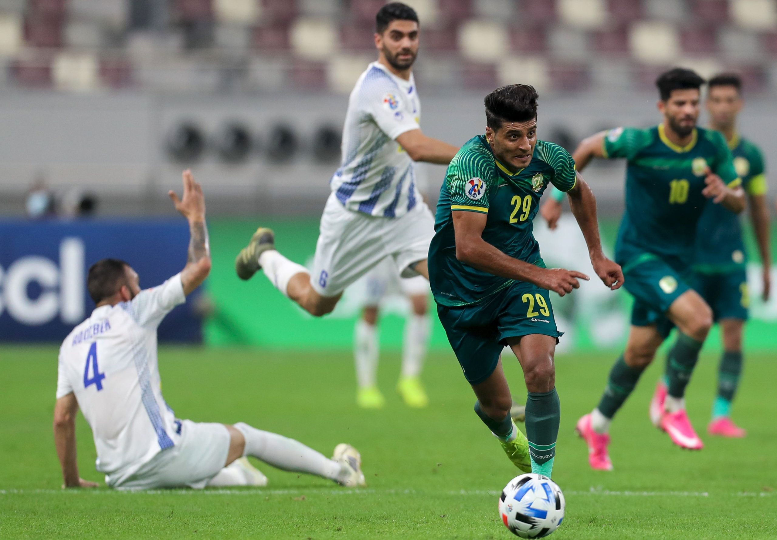 Al-Shorta's forward Hussam Jadallah runs with the ball during the AFC Champions League group A match between Iran's Esteghlal and Iraq's Al-Shorta on September 20, 2020, at the Khalifa International Stadium in the Qatari capital Doha. (Photo by KARIM JAAFAR / AFP) (Photo by KARIM JAAFAR/AFP via Getty Images)