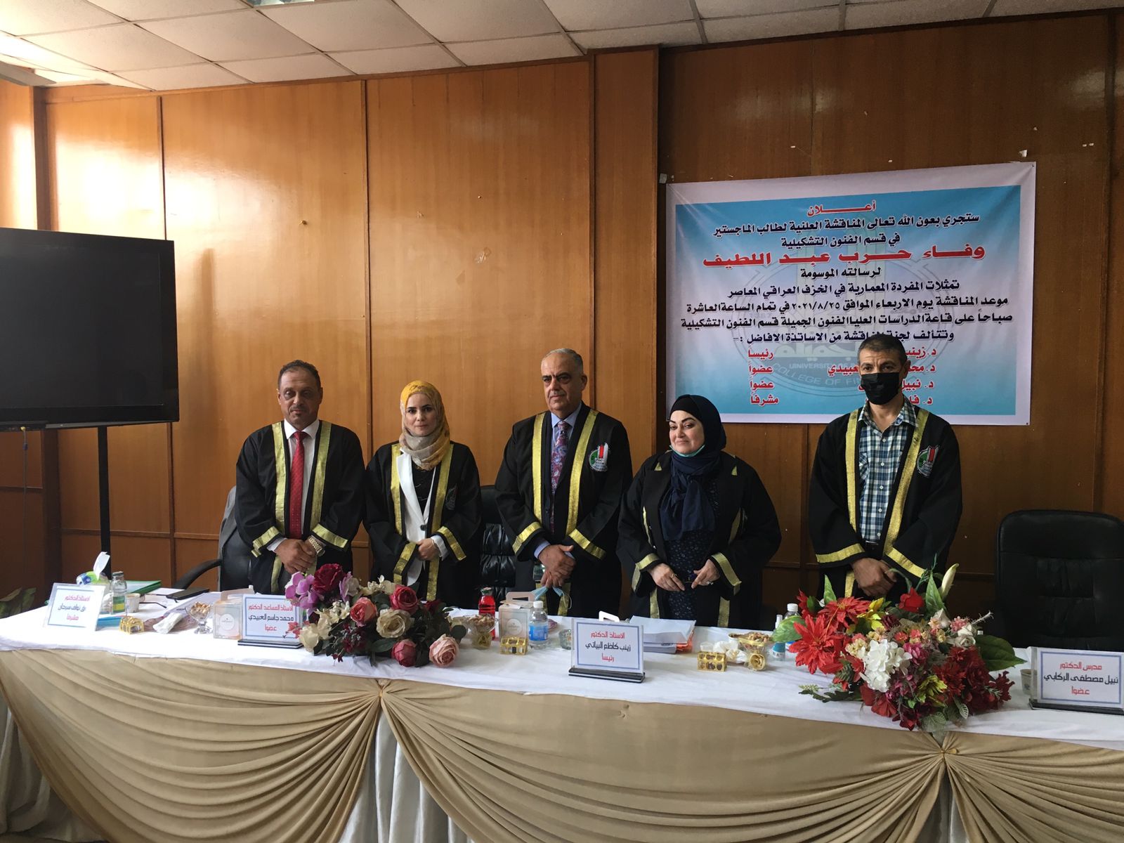 ناقش قسم الفنون التشكيلية رسالة ماجستير عن تمثلات المفردة المعمارية في الخزف العراقي المعاصرللطالبة وفاء حرب عبد اللطيف.