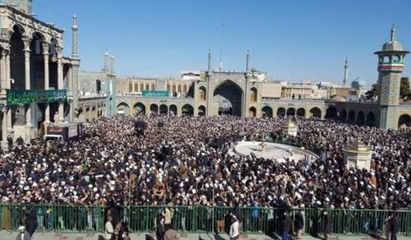 وانطلقت مراسم التشييع من ساحة “جهاد” حتى مرقد السيدة “فاطمة المعصومة (س)” حيث قرأ آية الله علي كريمي جهرمي صلاة الميت على جثمان المرجع الراحل وتم طوافه حول الضريح الطاهر.