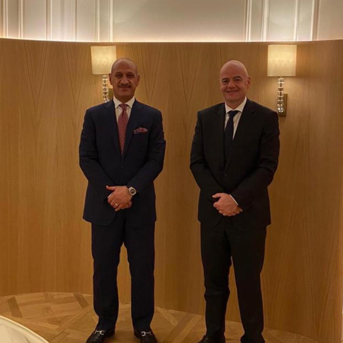 ونوه “تم توجيه الدعوة إلى إنفانتينو لزيارة بغداد وحضور المباراة المرتقبة بين العراق والإمارات، والاطلاع على المنشأت الرياضية المتطورة“.