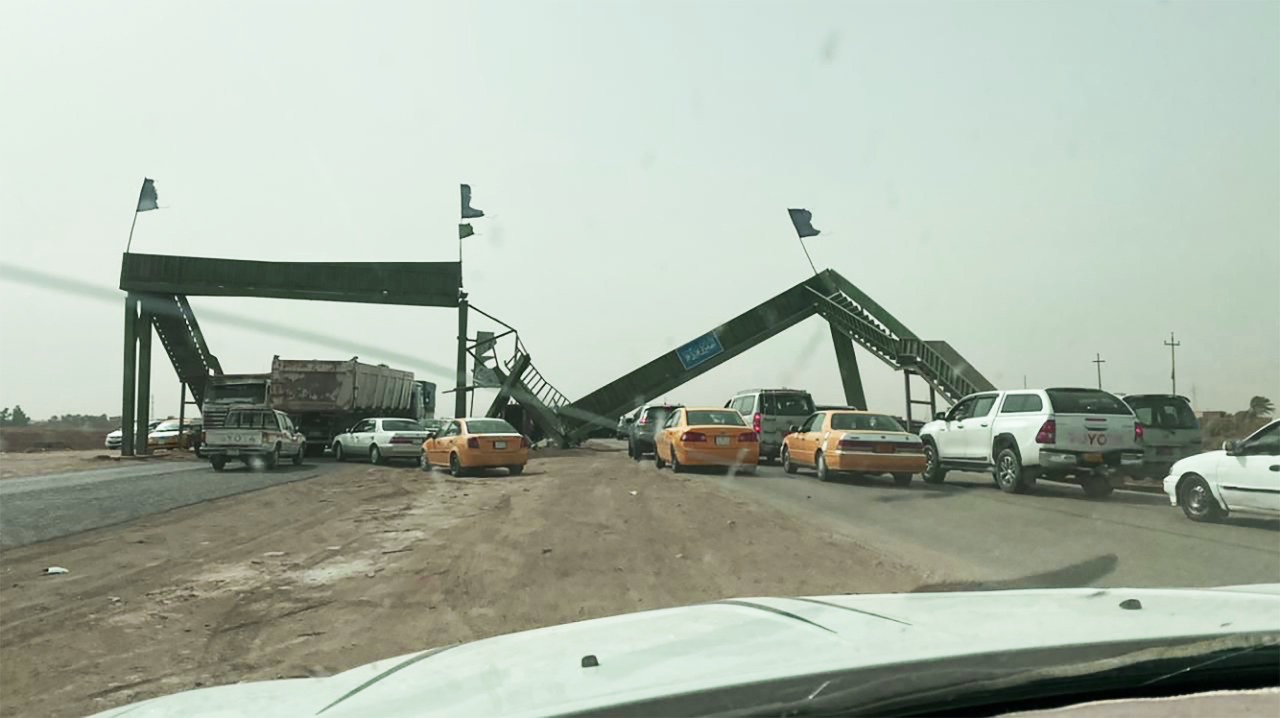 مسؤول حكومي يرتطم بجسر جنوب العراق ويتسبب بانهياره !