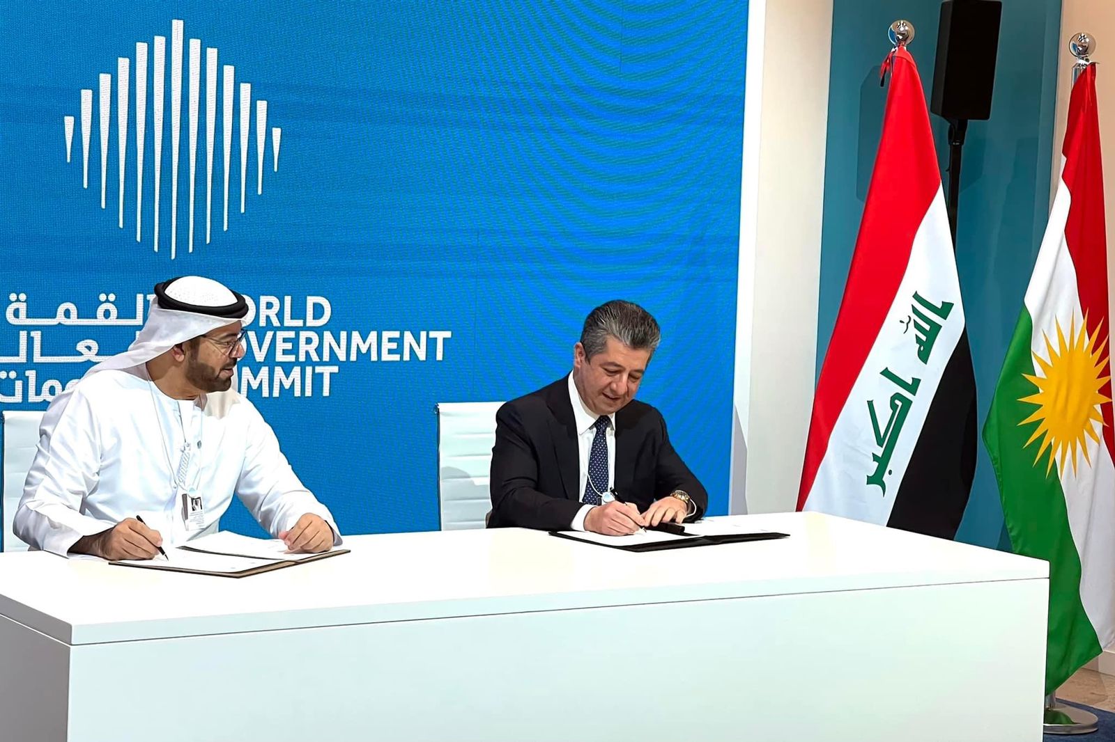 وقع رئيس حكومة إقليم كردستان مسرور بارزاني ورئيس شؤون مجلس الوزراء الإماراتي محمد القرقاوي، امس الثلاثاء، مذكرة تفاهم بشأن التبادل المعرفي في مجال تطوير وتحديث العمل الحكومي.