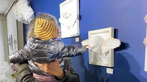 ويسافر الزائر للمعرض الذي يستمر، حتى يوم غد الأربعاء، بين منحوتات ولوحات مرسومة، ومعلقة على جدران الرواق، إلى عوالم خيالية.