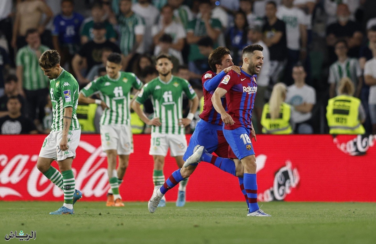 وحقق برشلونة فوزًا متأخرًا على مضيفه ريال بيتيس (2-1)، ضمن مباريات الجولة 35 من الدوري الإسباني، بفضل هدف قاتل لألبا.