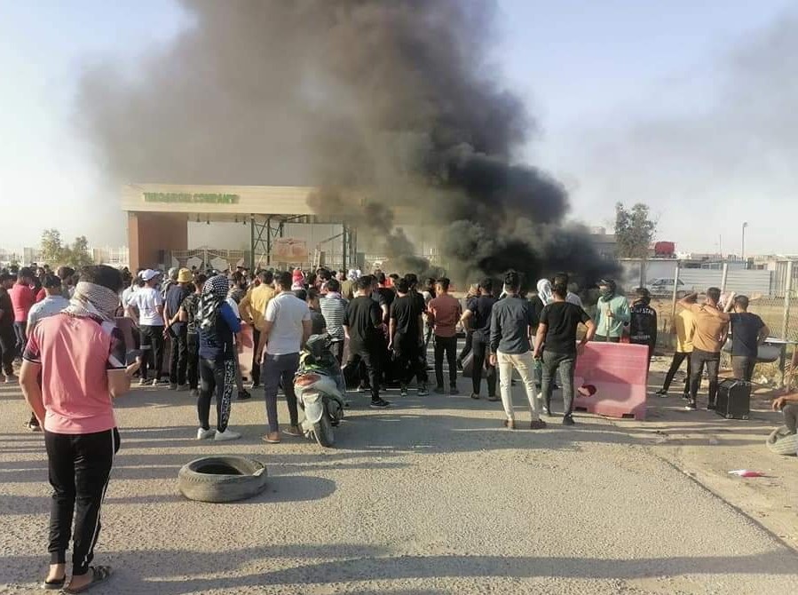 وأضاف أن “المتظاهرين قاموا بإغلاق بوابة شركة النفط بالاطارات المحترقة”.