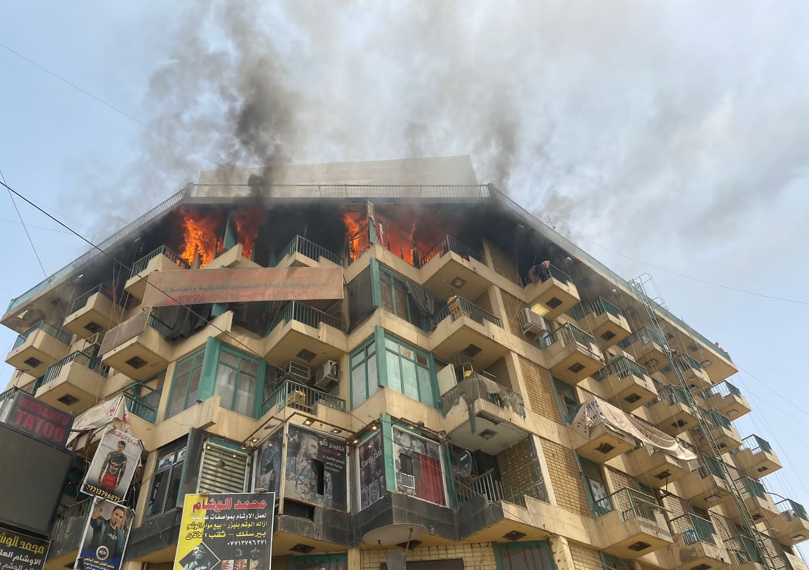 الدفاع المدني ينقذ 9 أشخاص ويخمد حريقاً قرب ساحة النصر وسط بغداد