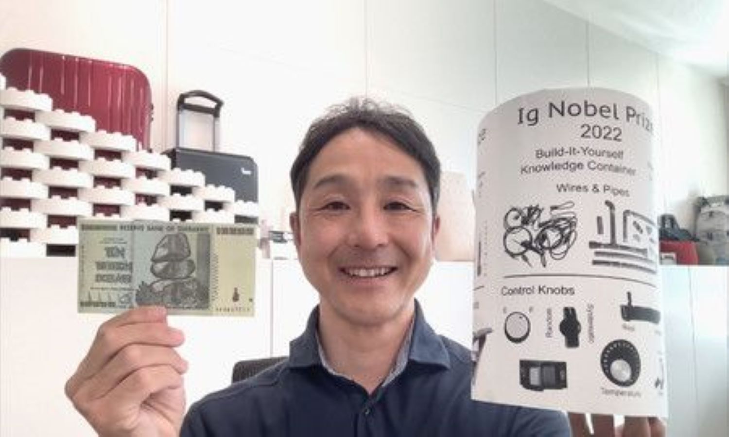 فاز فريق بجائزة “أيغ نوبل” للحماقة لهذا العام عن النتائج التي توصّل اليها حول عدد الأصابع التي يستخدمها الناس للف الأشياء الاسطوانية مثل مقبض الباب. وكان الفريق بقيادة الجنرال ماتسوزاكي (50 عامًا)، وهو أستاذ في معهد تشيبا للتكنولوجيا، وتم تقديم الجائزة في حدث على الإنترنت.