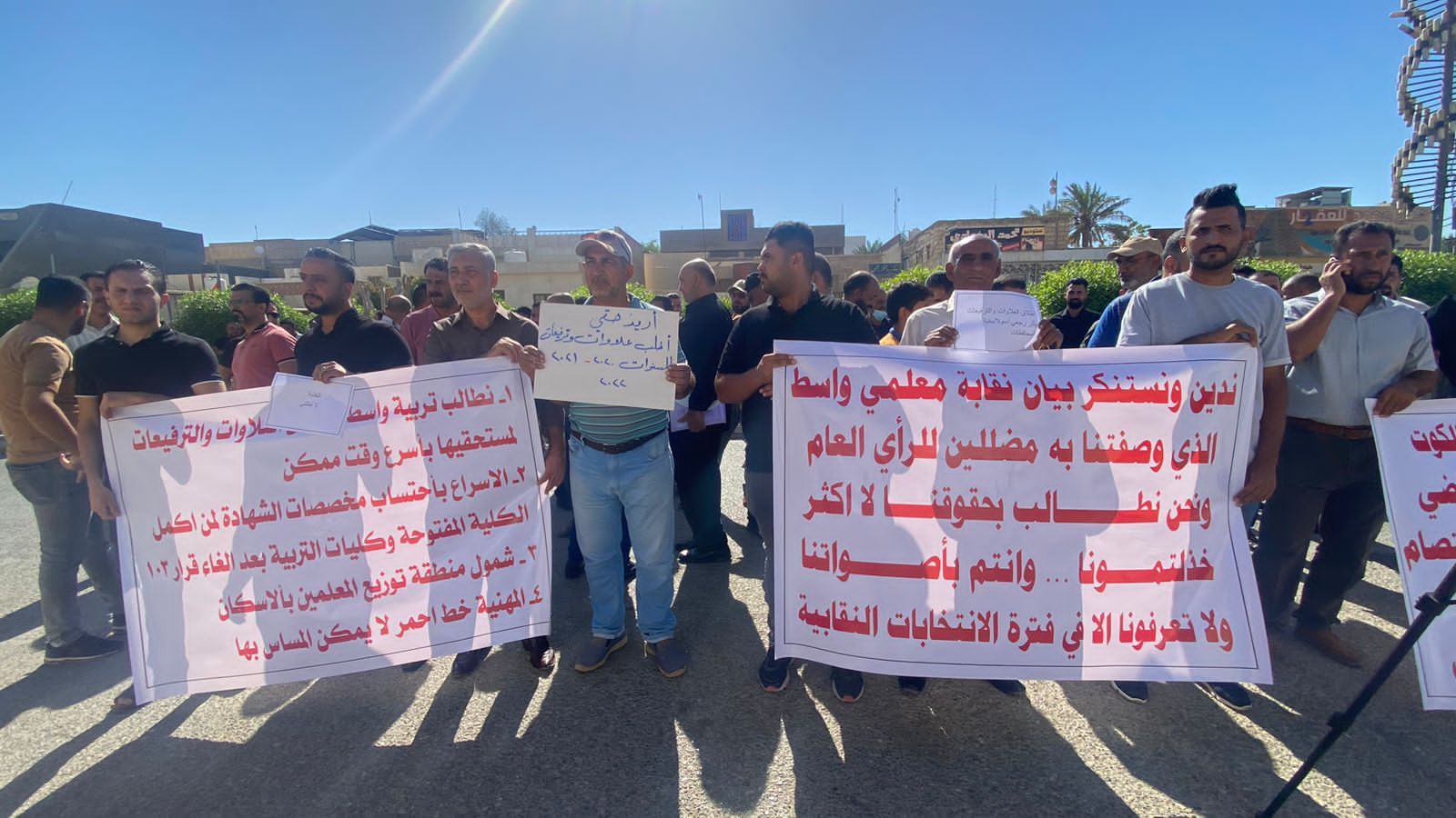 تربويو واسط يحتجون ويلوحون بالتصعيد لتأخر صرف مستحقاتهم