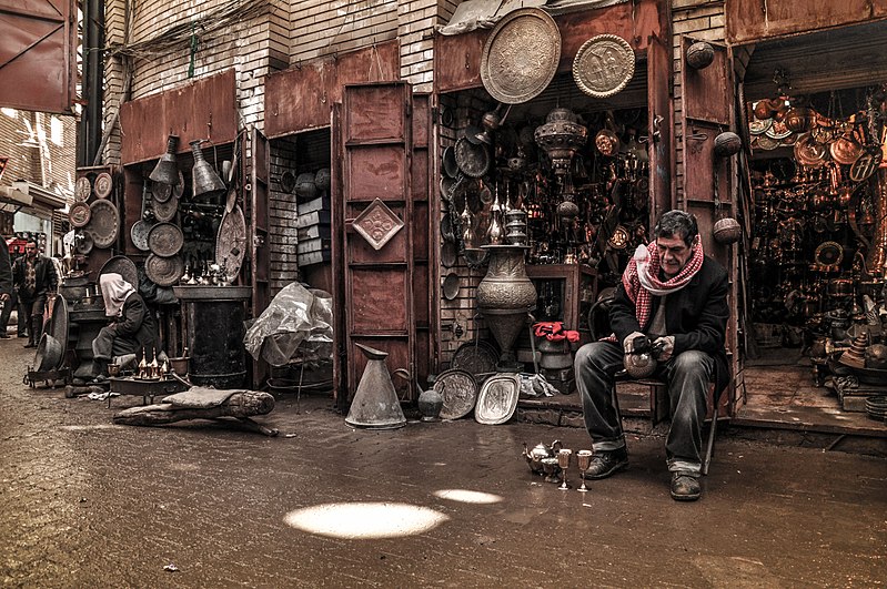 على مدار نحو مائتي عام في بغداد، كانت أعداد لا حصر لها من الآباء والأبناء يصوغون معدن النحاس على شكل أوانٍ وأطباق ومصابيح في هذا الشارع الضيّق المخصص للمشاة، الذي أصبح الآن مكاناً لمحال الأقمشة والمشغولات الجاهزة بدلاً من محال الصفافير.