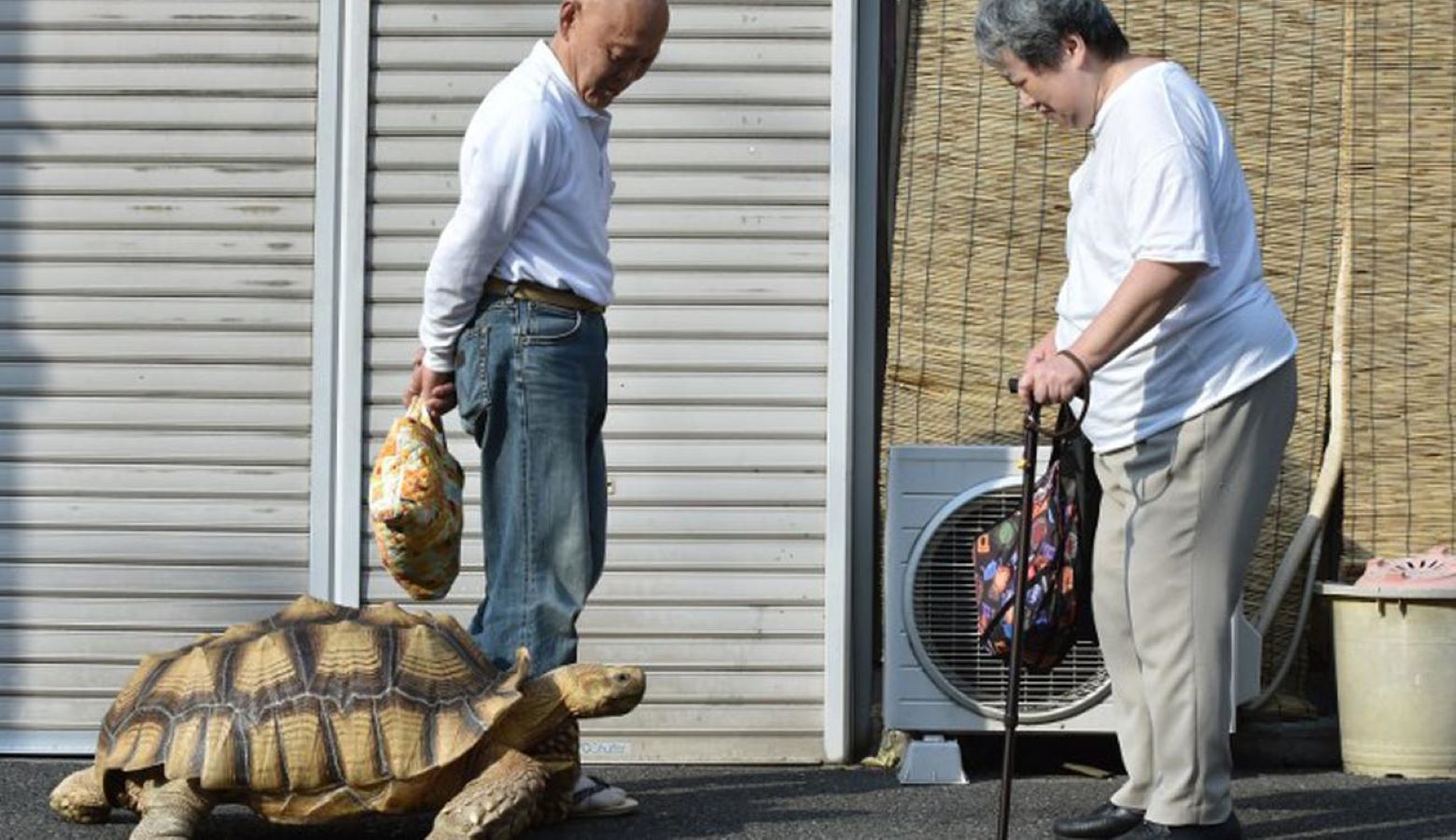 يعتني مسن ياباني بسلحفاة افريقية وكأنها حيوان أليف بوزن 70 كيلوغراماً. فقد اعتاد هيساو ميتاني وسلحفاته الأفريقية العملاقة (الملقبة بون تشان) منذ فترة طويلة رؤية الناس يستديرون إليهما وهم يسيرون في شوارع طوكيو، حتى إنه أصبح “ناراً على علم” في حيه. فمن الصعب ألا يلاحظك أحد عندما تكون بصحبة سلحفاة عملاقة تزن 70 كيلوغرامًا، بحسب موقع (futura.sciences) .