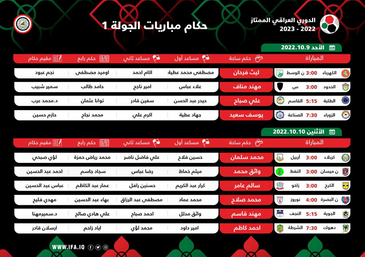 أولى المواجهات ستجمع الكهرباء مع ضيفه العنيد نفط الوسط، وتقام بملعب الزوراء. ويحاول البرتقالي خطف أول 3 نقاط في ظل جاهزية لاعبيه بعد معسكر الآنيا. بينما يسعى نفط الوسط بقيادة عبد الغني شهد للوقوف نداً قوياً لمنافسه المتطور.