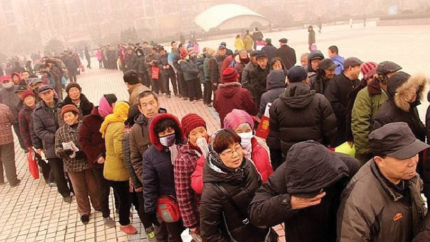 ونقلت وسائل إعلامية عن صحيفة الشعب الصينية أن السكان المحليين في مدينة ياوتشينغ بمقاطعة شاندونغ شرقي الصين،انتظروا لأكثر من ثلاث ساعات في الطوابير،رغم أن درجة الحرارة وصلت إلى حوالي 5 درجات مئوية، بالإضافة إلى مستويات التلوث المرتفعة في الهواء.