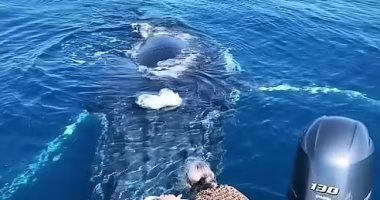 وثقت عدسات الكاميرات مشهد حوت أحدب وهو يقترب من قارب لتحية امرأة، والتى كانت مصدومة بينما ظهر الحوت وهو يسبح مباشرة قبل أن يرسل رذاذًا ضخمًا من أنفه، وتم تصوير اللقطات الاستثنائية على طول مضيق ساندى العظيم على ساحل فريز، فى كوينزلاند الأسترالية، والتقطت صور الحوت وهو يسبح مباشرة بالقرب من القارب ويتدحرج في الماء وينفخه، وفقًا لصحيفة ديلى ميل البريطانية.