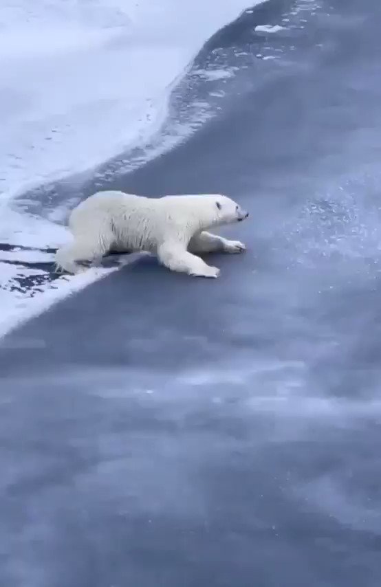 ونال فيديو الدب القطبي نحو مليوني مشاهدة على حساب المتخصص في الأعمال الإلكترونية، التركي تانسو ييان، على موقع “تويتر“. ومدة الفيديو هي 14 ثانية فقط، ويبدأ عندما يلقي الدب بنفسه بهدوء، متمددا فوق المياه المتجمدة ثم يشرع بالزحف، ويواصل الأمر إلى أن وصل إلى الضفة المقابلة للمياه المتجمدة، حيث وقف على رجليه واستعاد حركته العادية.