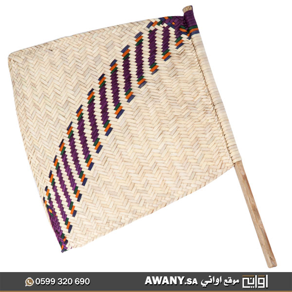 “مهفة” الخوص من الحرف اليدوية الشعبية القديمة، صممت بـشكل مربع مسفوفة من خوص النخيل، بقبضة يد طويلة من جريد النخيل، مزيج من الألوان الزاهية والجميلة.